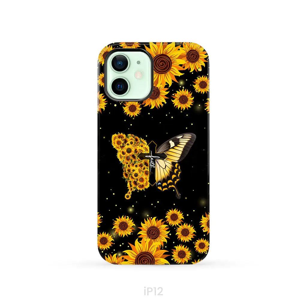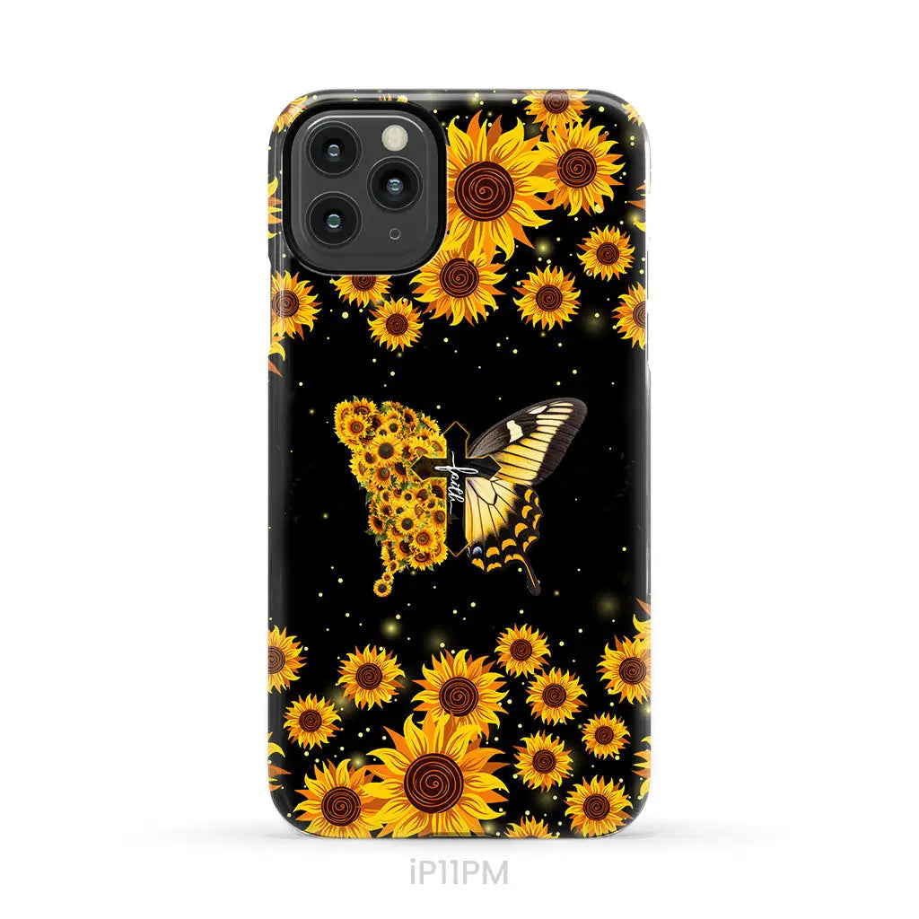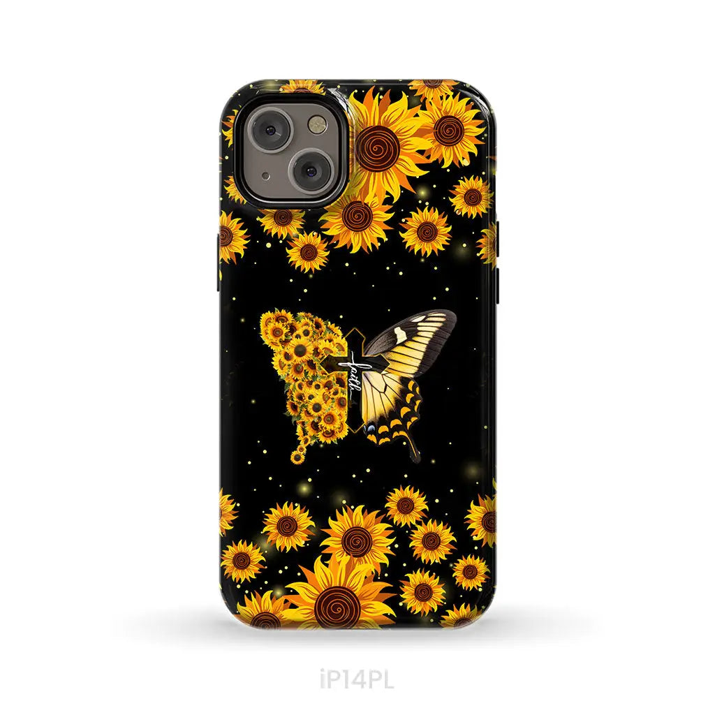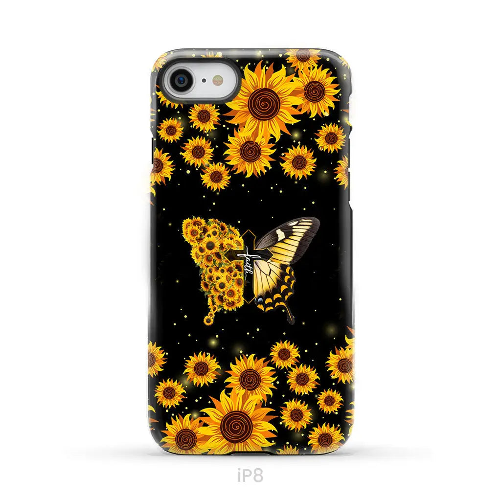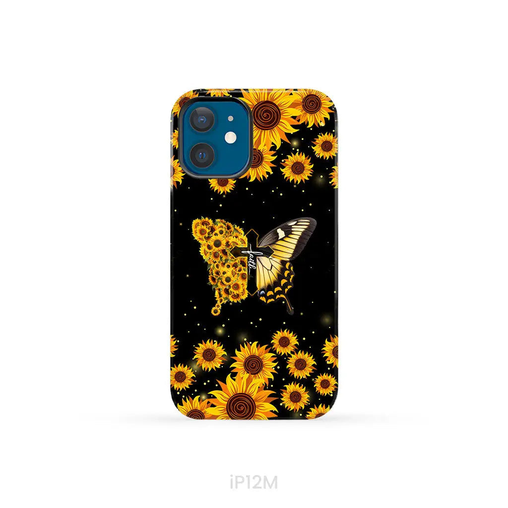 Faith Cross, Butterfly Sunflower, Christian Phone Case