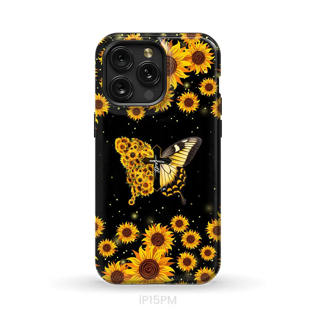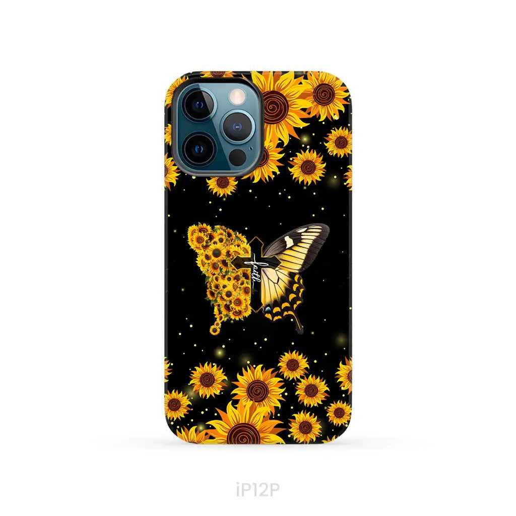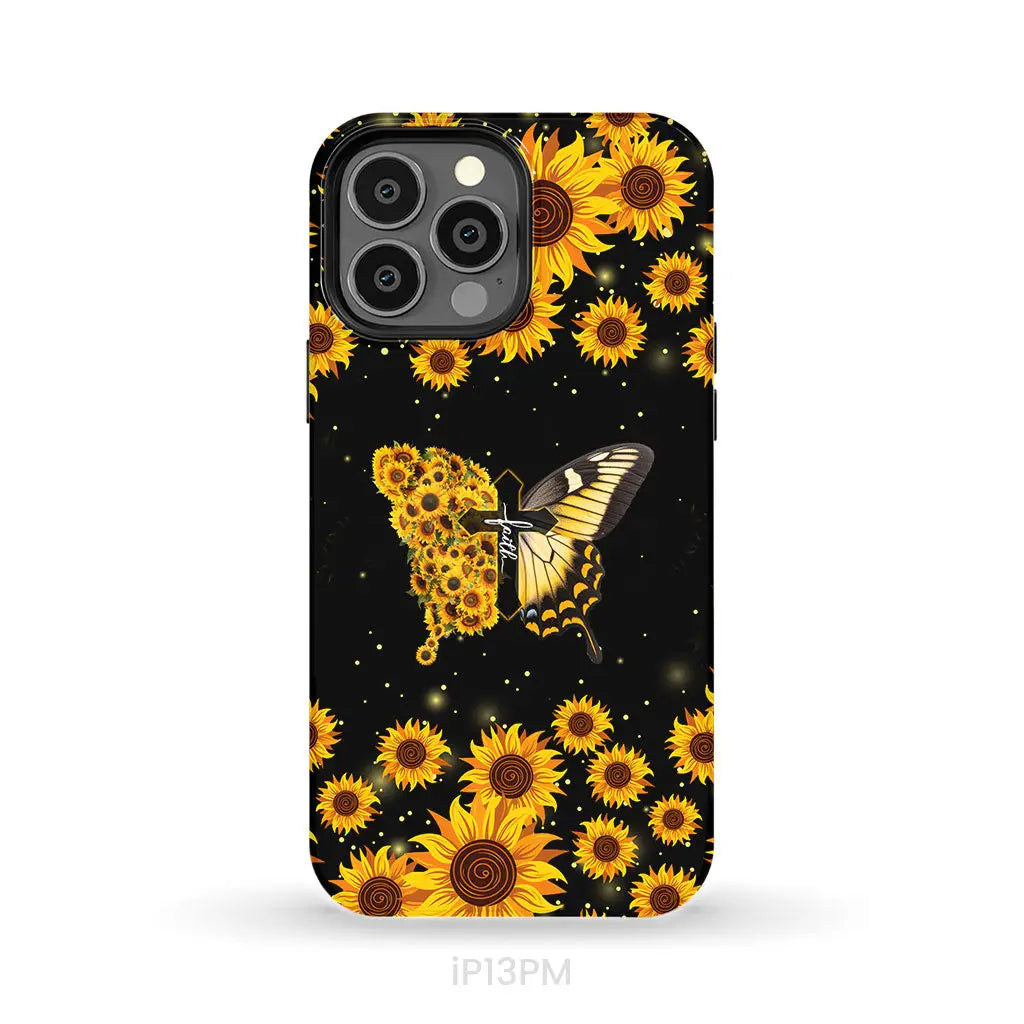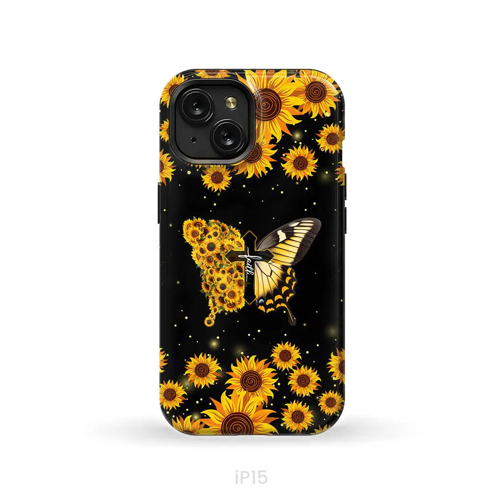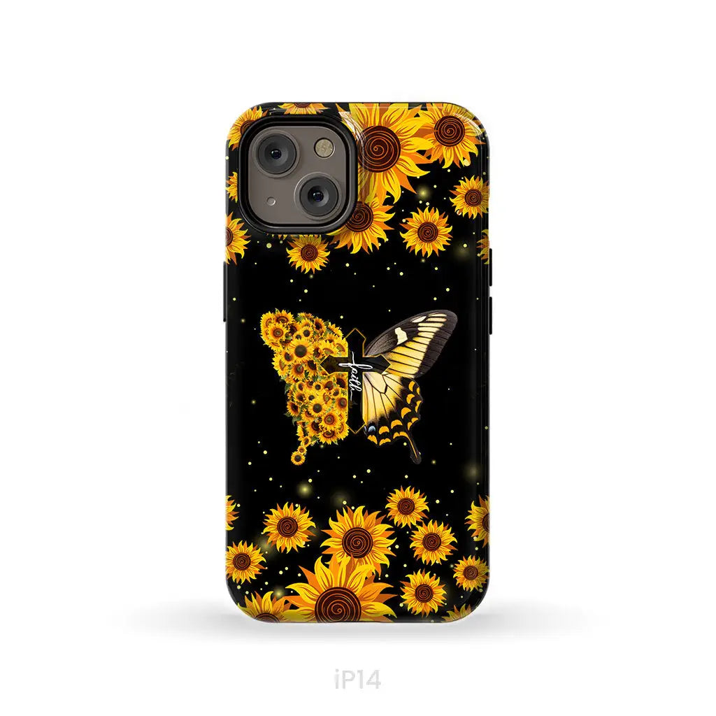 Faith Cross, Butterfly Sunflower, Christian Phone Case