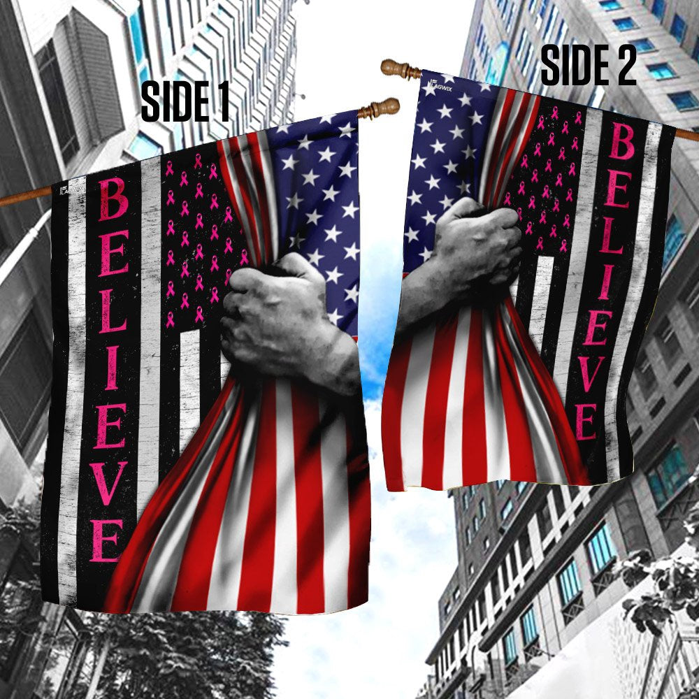 Christian Garden Flags, Believe Breast Cancer Awareness American US Flag, Christian House Flags, Christian Cross Flag, Faith Flag