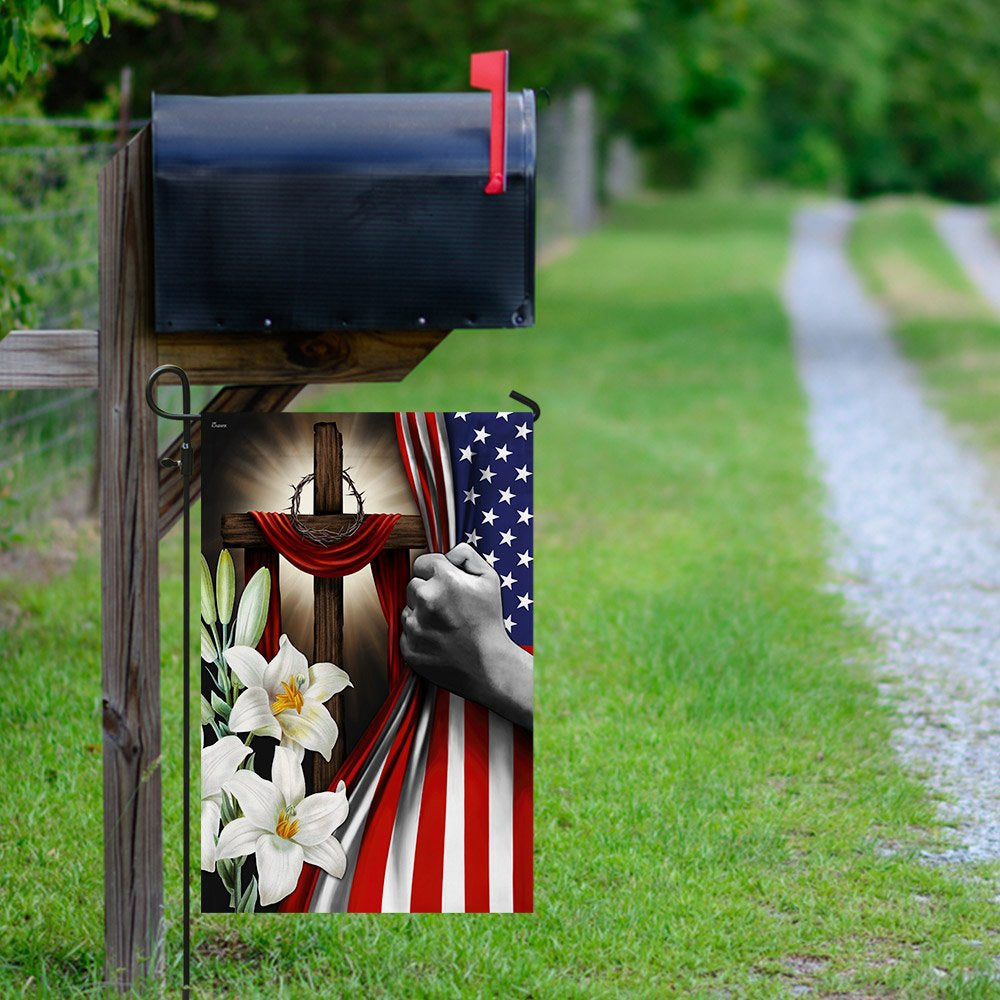 Christian Garden Flags, Easter Lilies Christian Cross American US Flag, Christian House Flags, Christian Cross Flag, Faith Flag