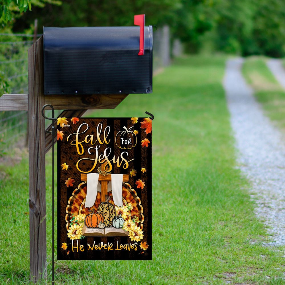 Christian Garden Flags, Fall For Jesus He Never Leaves Thanksgiving Flag, Christian House Flags, Christian Cross Flag, Faith Flag