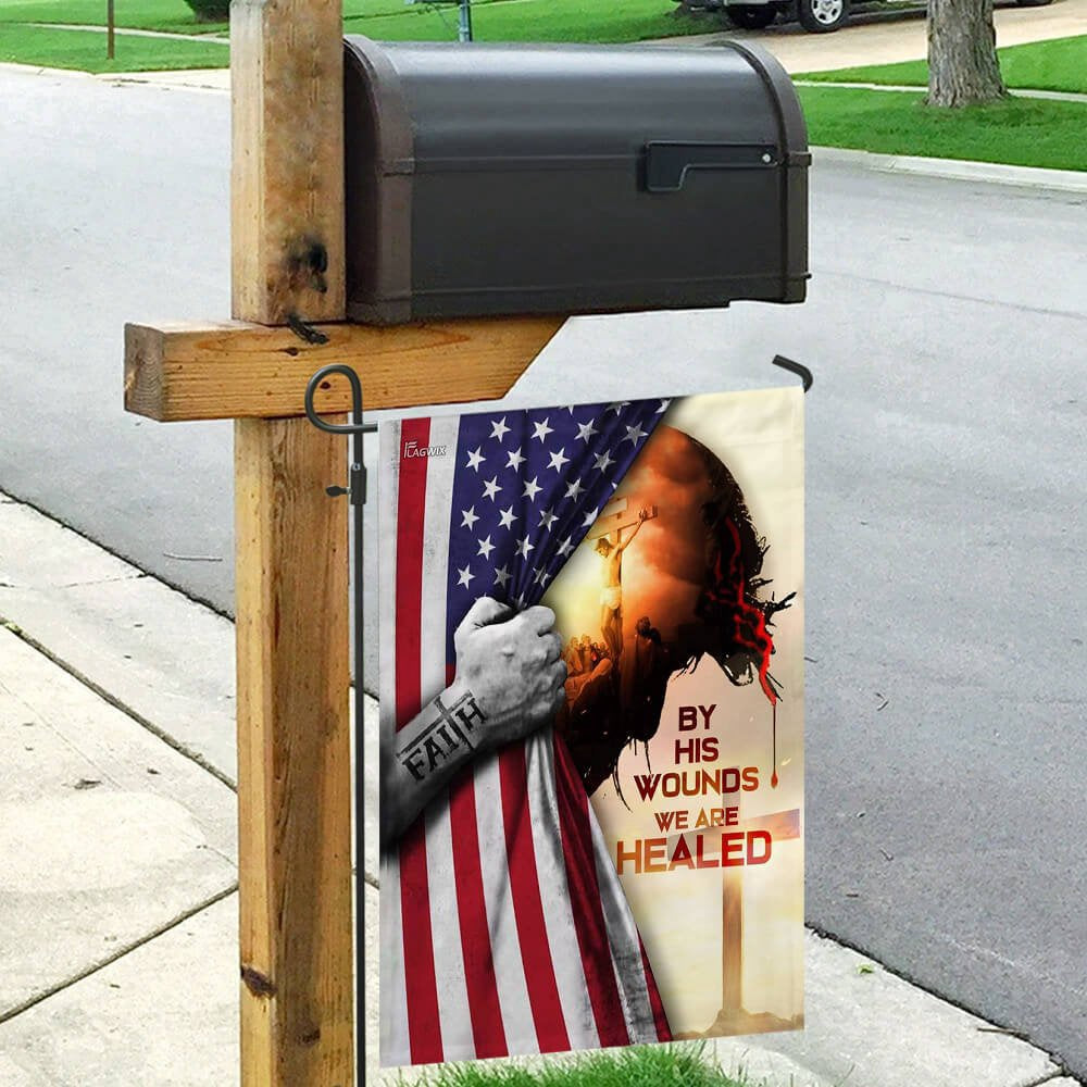 Christian Garden Flags, God Jesus Christian By His Wounds We Are Healed American Flag, Christian House Flags, Christian Cross Flag, Faith Flag