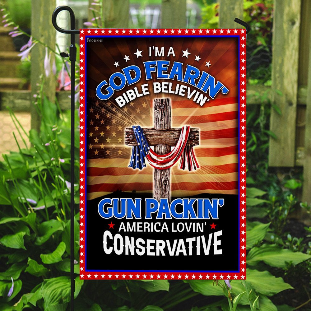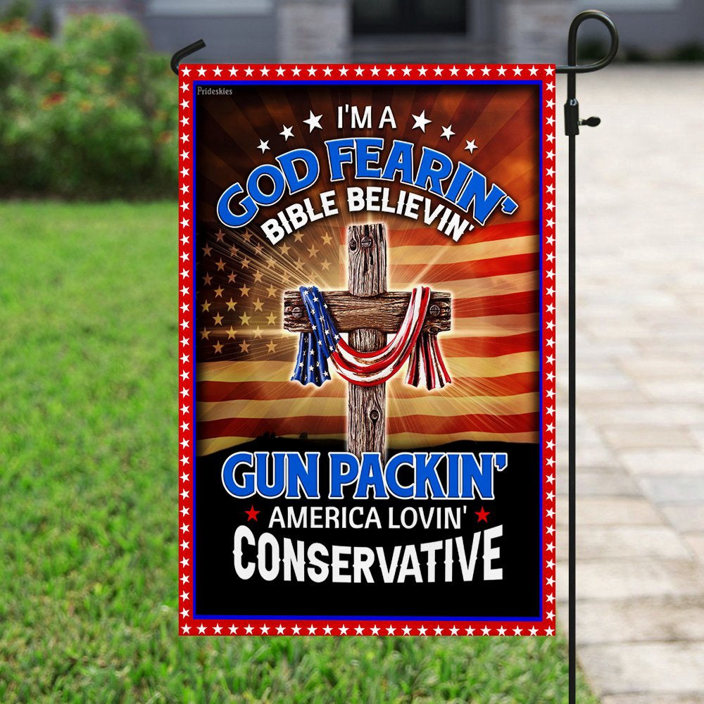 Christian Garden Flags, I'm A God Fearin' Bible Believin' America Lovin' Flag, Christian House Flags, Christian Cross Flag, Faith Flag