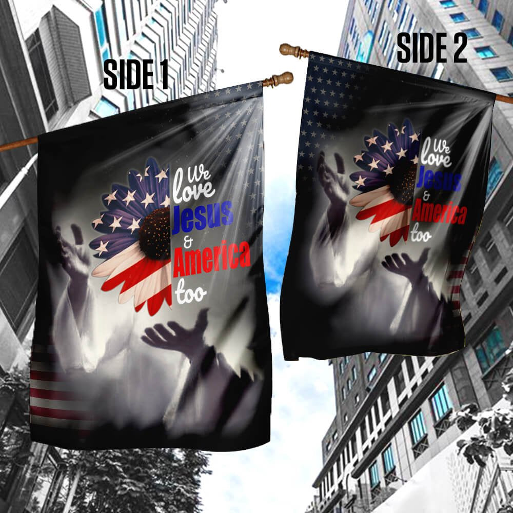 Christian Garden Flags, Jesus Flag, Jesus And Sunflower Flag, American Flag, We Love Jesus And America Too, Christian House Flags, Faith Flag
