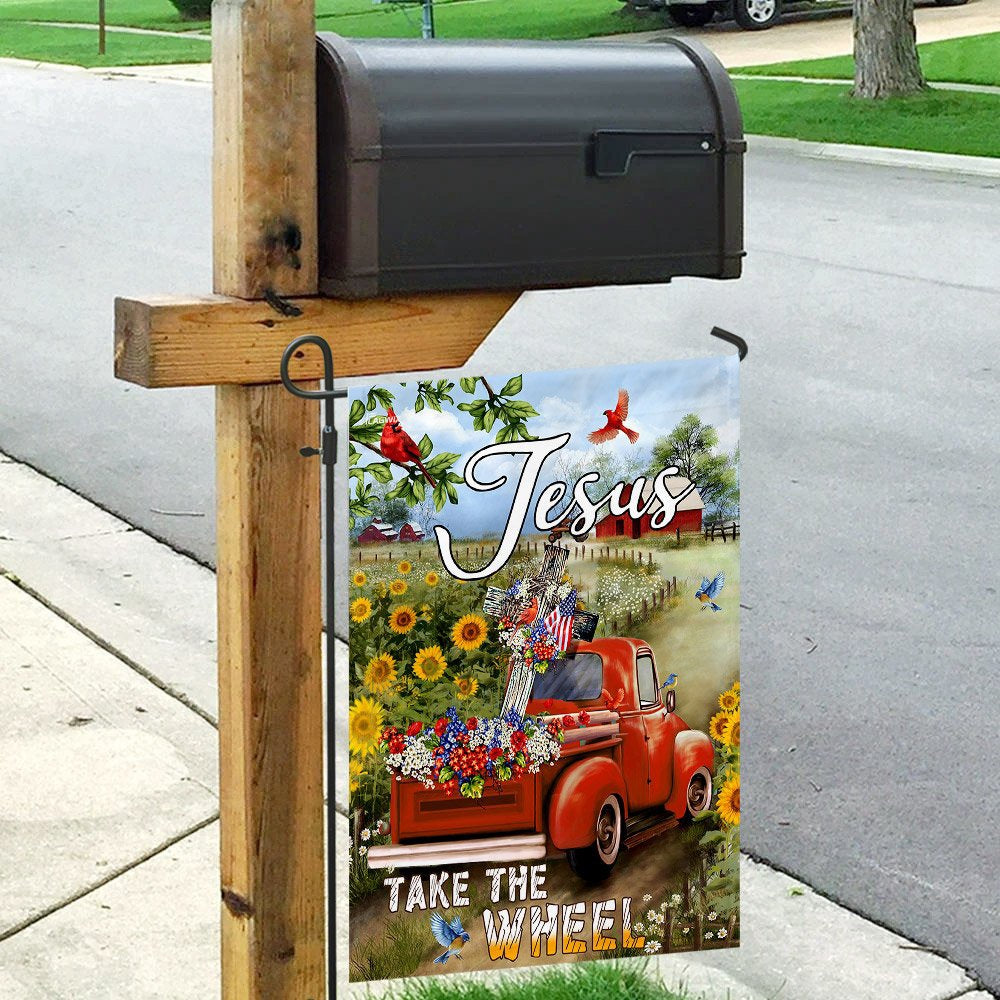 Christian Garden Flags, Jesus Take The Wheel Christian Cross Truck Farm Garden Flag, Christian House Flags, Christian Cross Flag, Faith Flag
