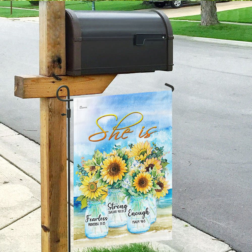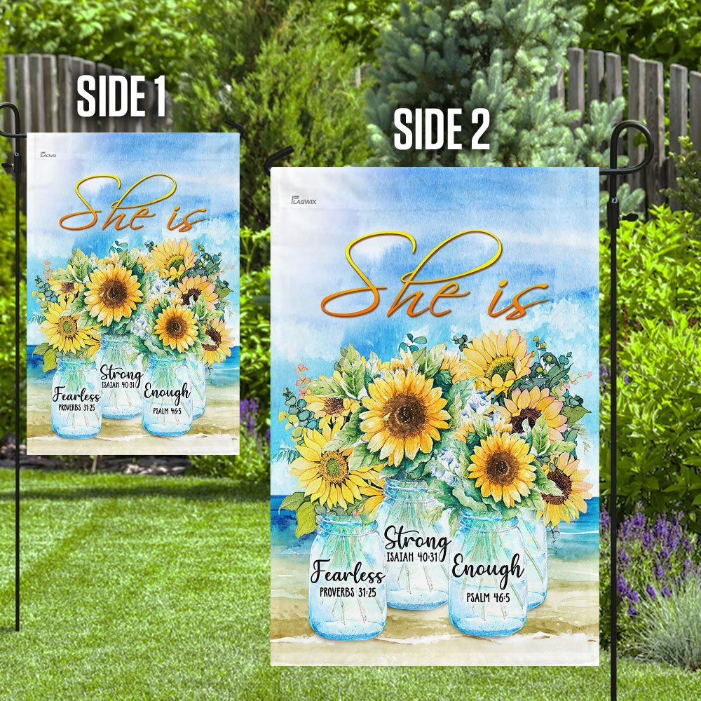 Christian Garden Flags, She Is Strong She Is Fearless She Is Enough Flag, Christian House Flags, Christian Cross Flag, Faith Flag