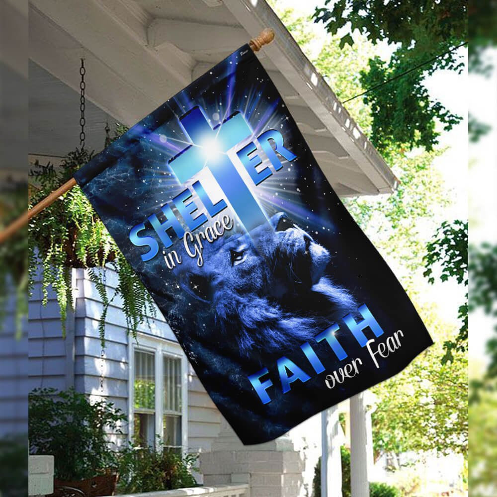 Christian Garden Flags, Shelter in Grace Faith over Fear Flag, Christian House Flags, Christian Cross Flag, Faith Flag
