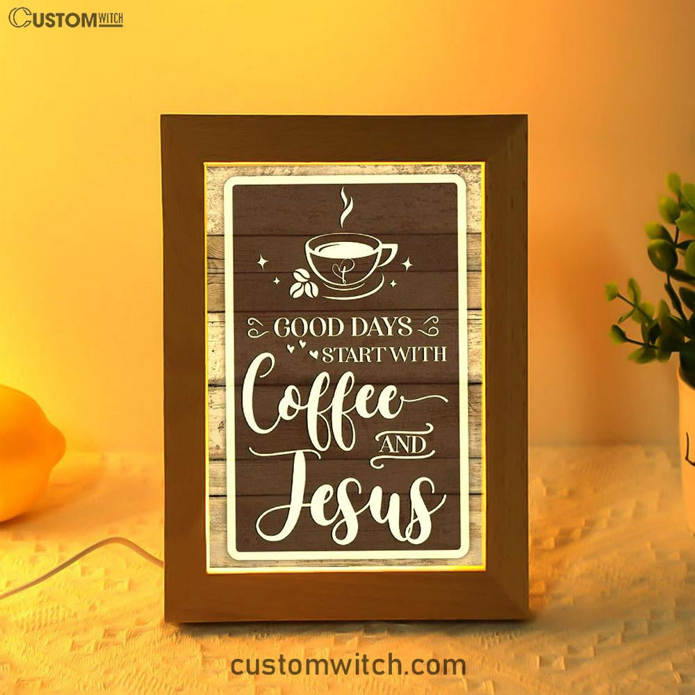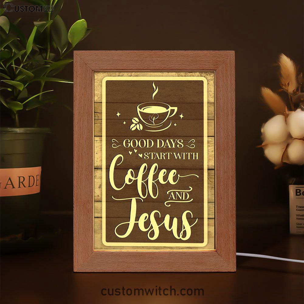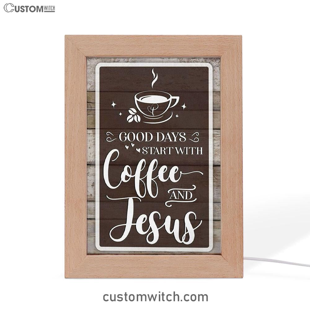 Christian Good Days Start With Coffee And Jesus Frame Lamp Prints - Bible Verse Decor - Scripture Art
