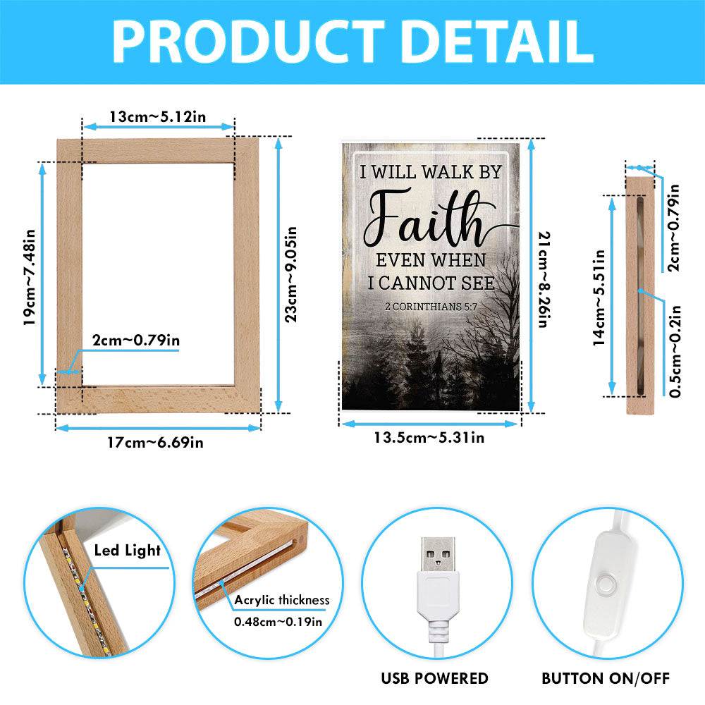 Christian I Will Walk By Faith Even When I Cannot See Frame Lamp Prints - Bible Verse Decor - Scripture Art