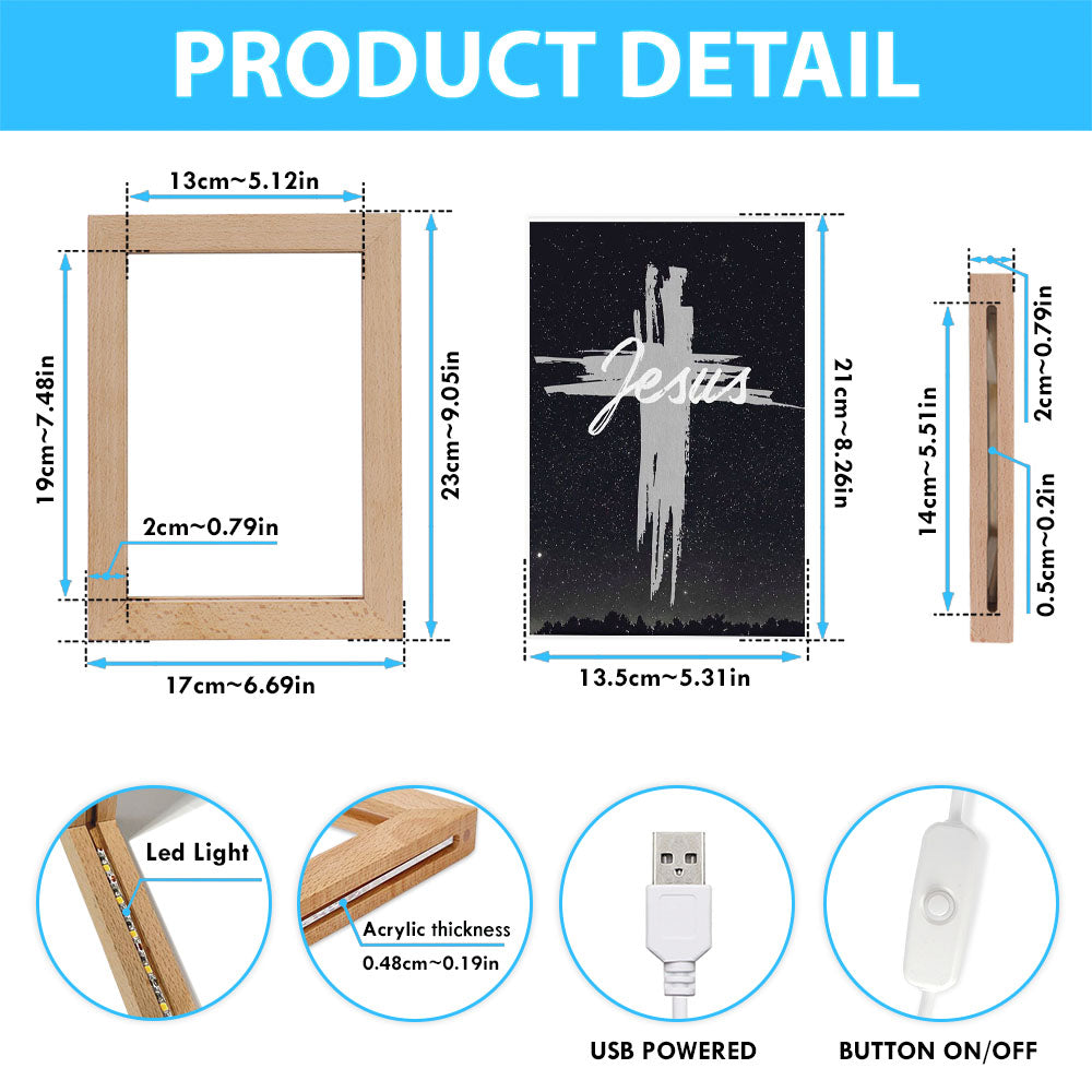 Christian Jesus Word Cross Frame Lamp Prints - Bible Verse Decor - Scripture Art