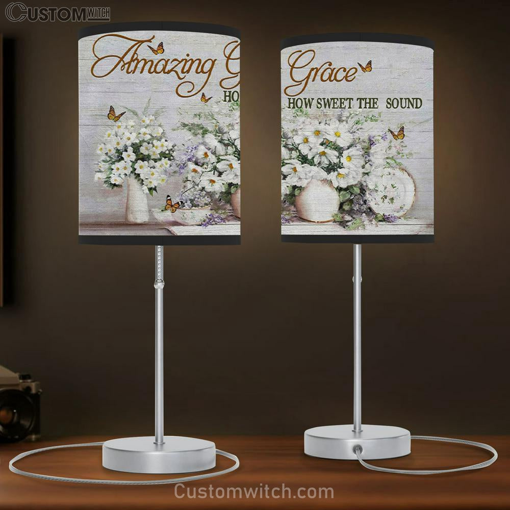 Christian Lamp Gift Amazing Grace How Sweet The Sound Butterfly Flowers Table Lamp Print - Christian Bedroom Decor