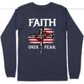 Christian Patriotic, Faith Over Fear American Flag Long Sleeve Shirt