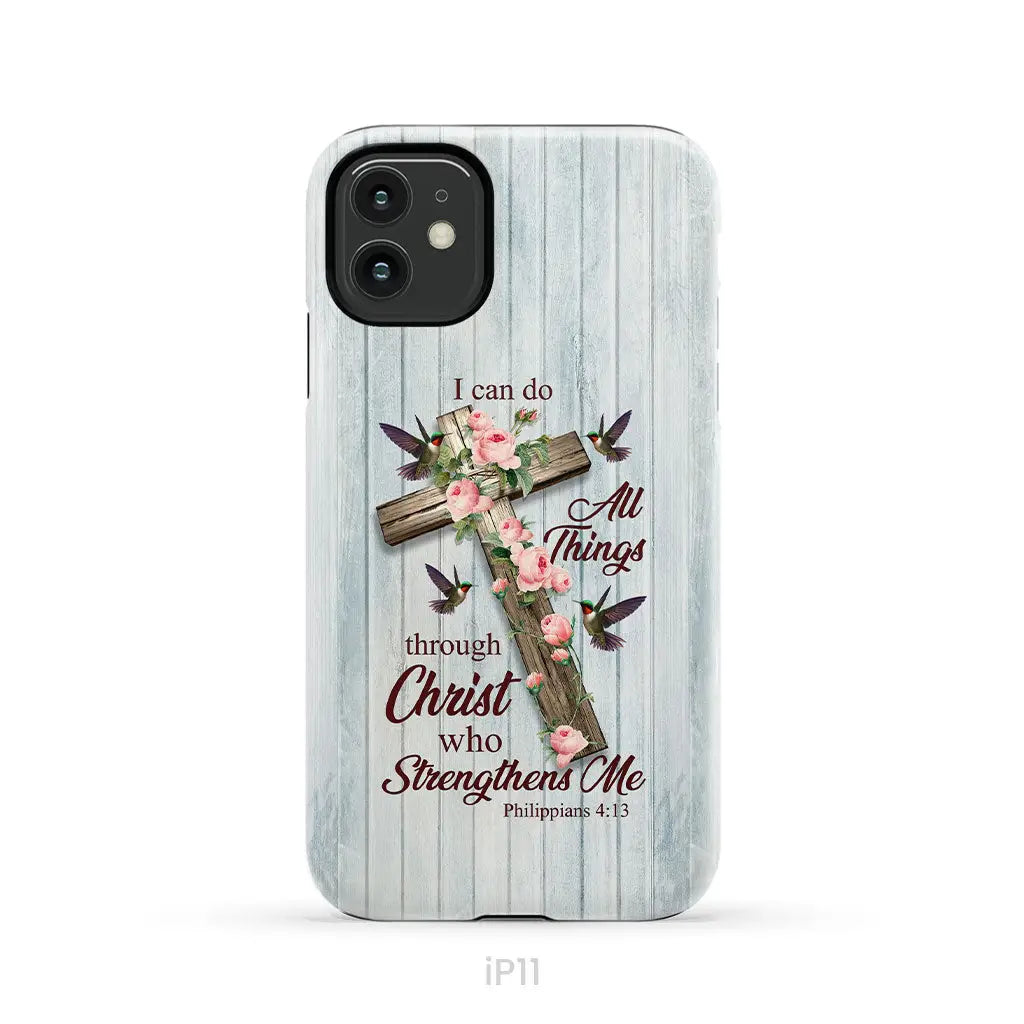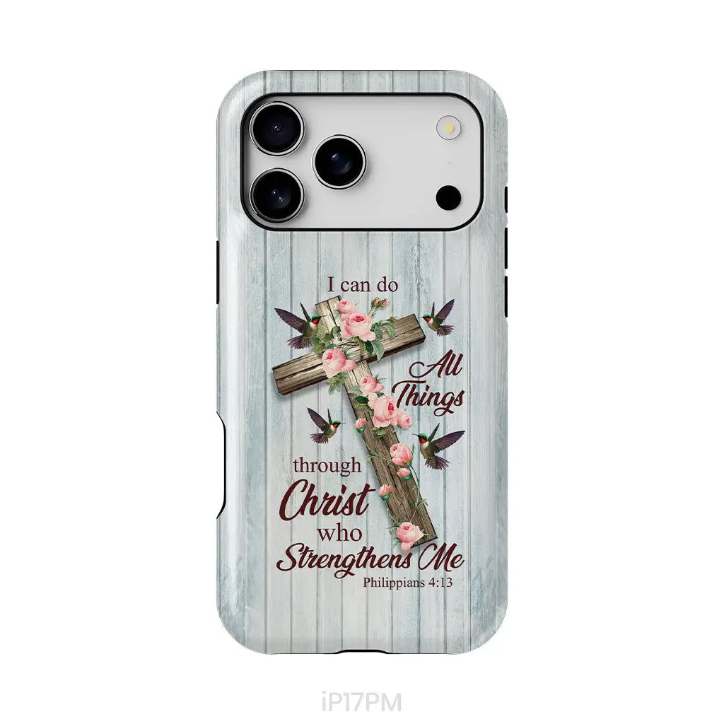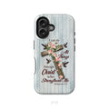 I Can Do All Things Through Christ, Cross With Flowers, Phone Case