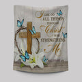 Christian Philippians 413 Nkjv Wooden Cross Lily Flower Butterflies Tapestry Prints - Bible Verse Wall Decor - Scripture Wall Art