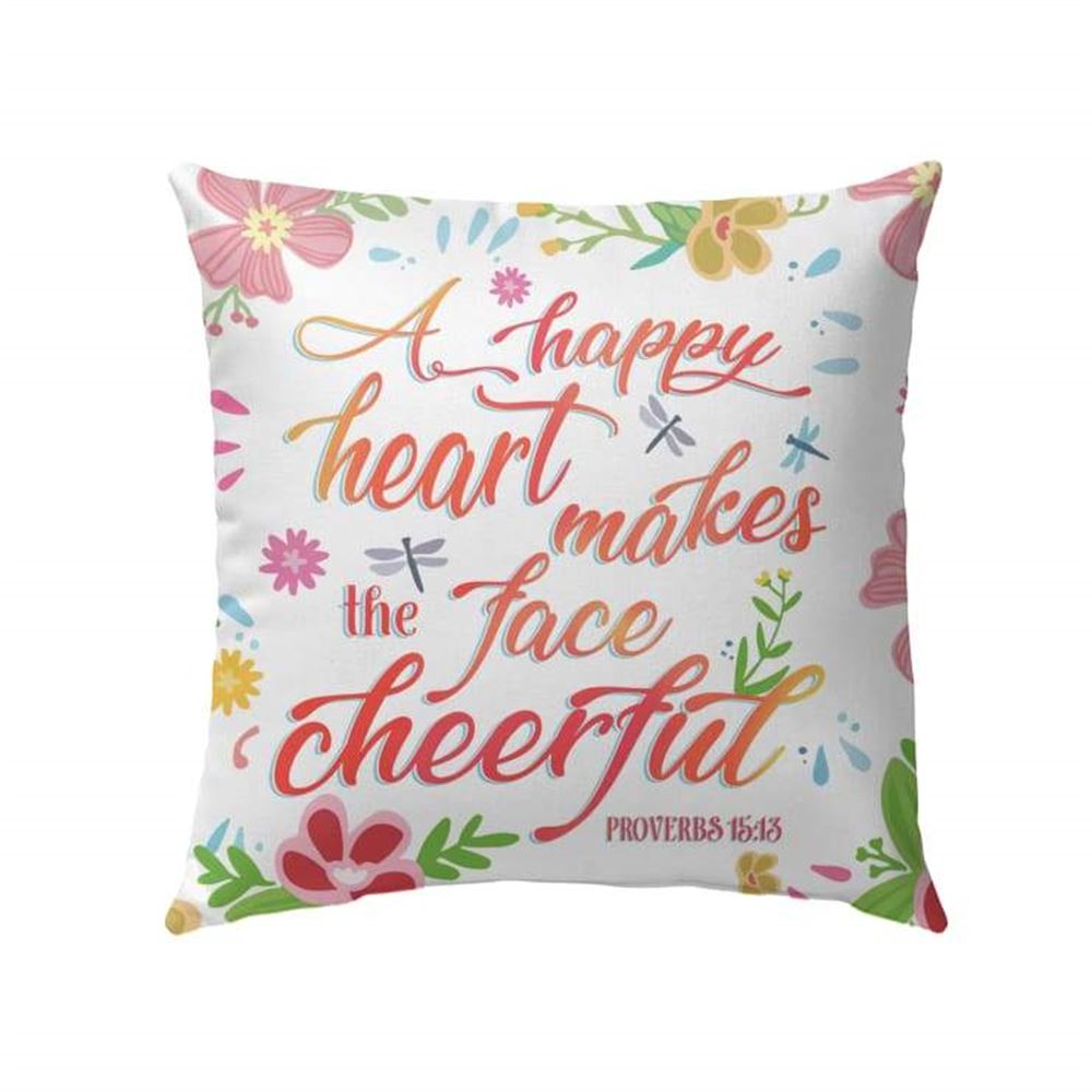 Christian Pillow, Jesus Pillow, A Happy Heart Makes The Face Cheerful Proverbs 1513 Pillow, Christian Throw Pillow, Inspirational Gifts, Best Pillow