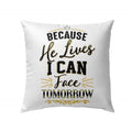 Christian Pillow, Jesus Pillow, Because He Lives I Can Face Tomorrow Christian Pillow, Christian Throw Pillow, Inspirational Gifts, Best Pillow