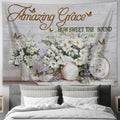 Christian Wall Art Amazing Grace How Sweet The Sound Butterfly Flowers Tapestry Print - Christian Wall Decor