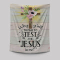 Christian Why Y'all Trying To Test The Jesus In Me Tapestry Prints - Bible Verse Wall Decor - Scripture Wall Art