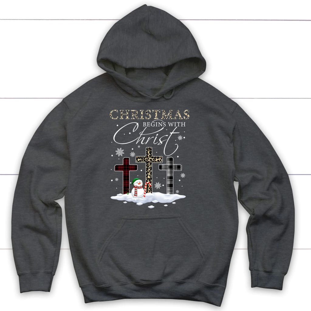 Christmas Begins With Christ, Crosses, Snowman, Christmas Hoodie