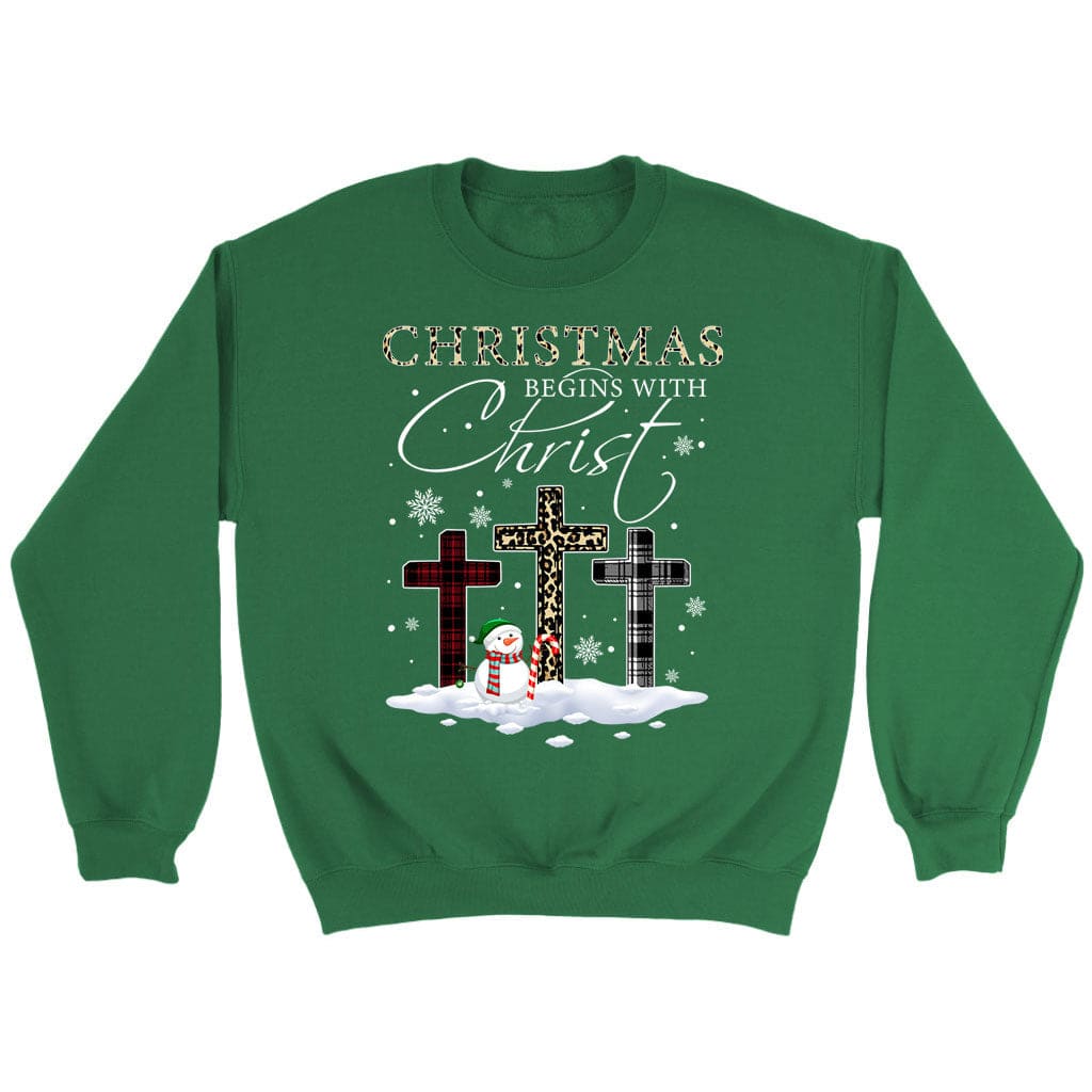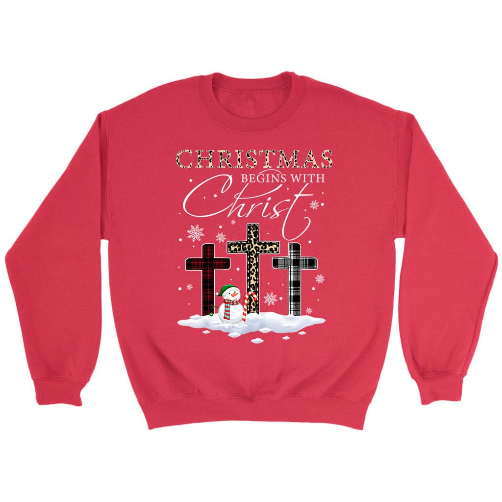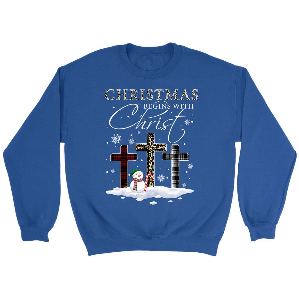 Christmas Begins With Christ, Crosses, Snowman, Christmas Sweatshirt