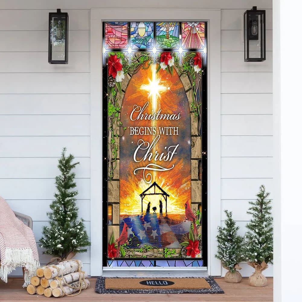 Christmas Begins With Christ Door Cover, Front Door Christmas Cover, Christian Door Decor, Door Christian Church, Christian Door Plaques