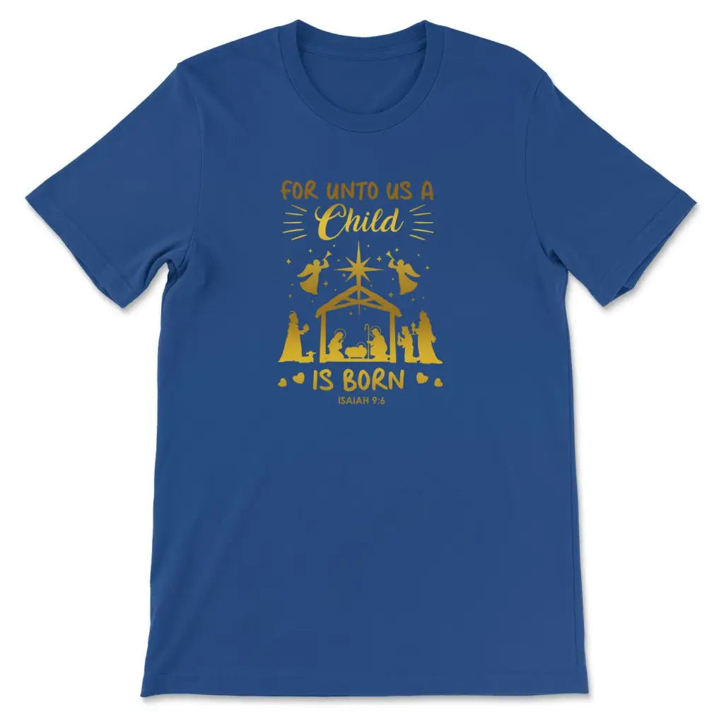 Christmas T-shirt, For Unto Us A Child Is Born, Nativity Scene