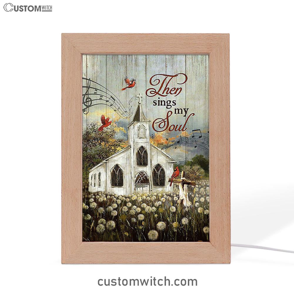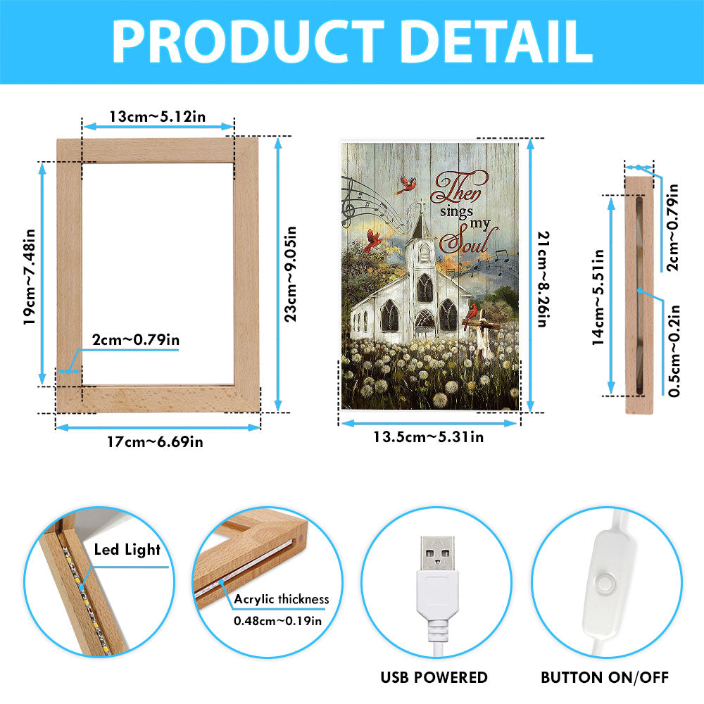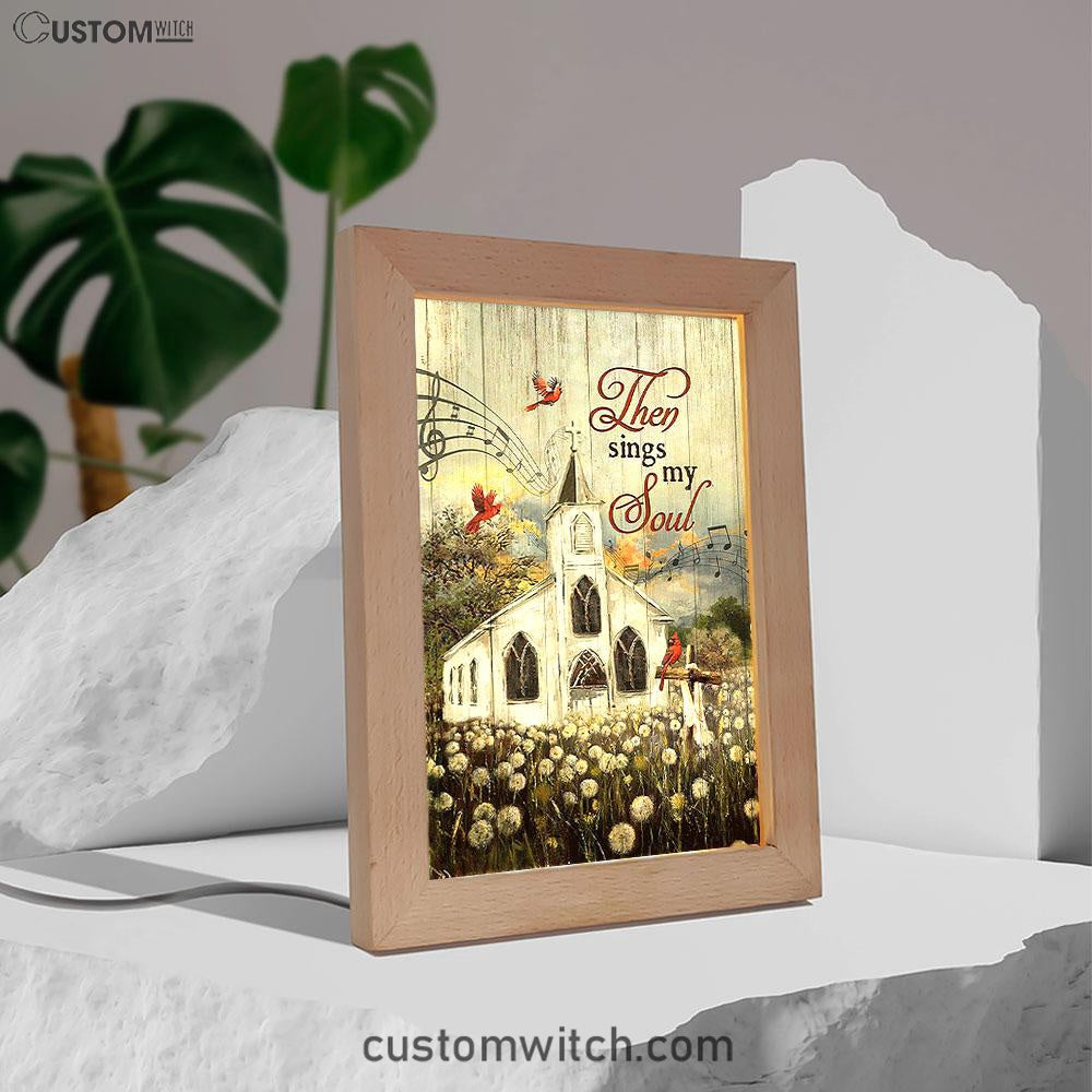 Church Lovely Red Cardinals Stunning Flower Field Frame Lamp-Then Sings My Soul Frame Lamp Art - Christian Night Light
