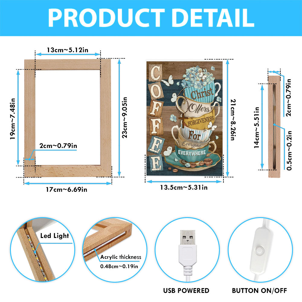 Coffee Christ Offers Forgiveness For Everyone Everywhere Coffee Cups Hummingbirds Frame Lamp Art - Christian Art Decor