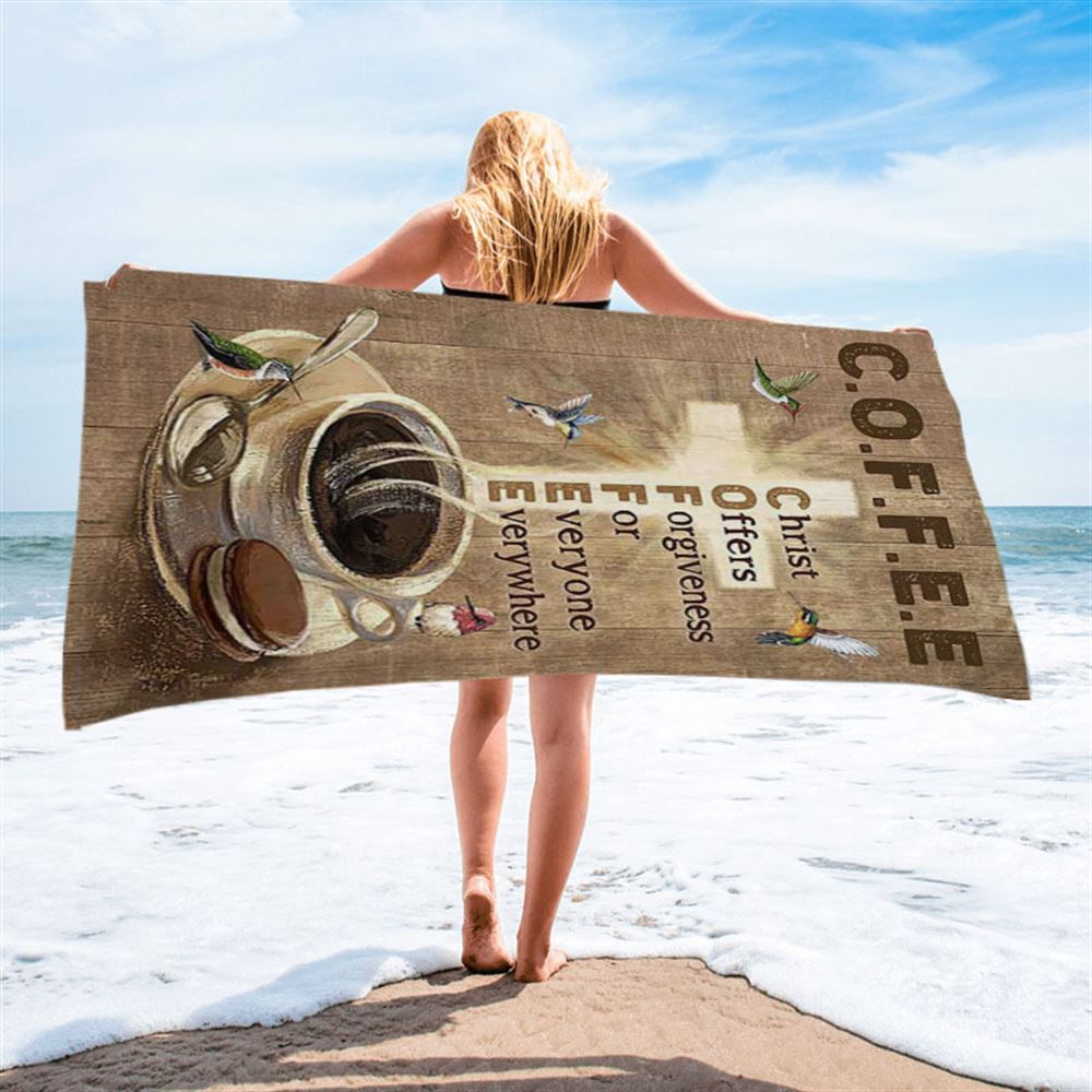Coffee Cup Hummingbird Christ Offers Forgiveness Beach Towel - Bible Verse Beach Towel - Christian Inspirational Beach Towel