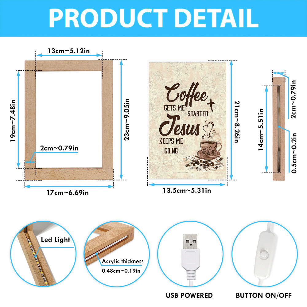 Coffee Gets Me Started Jesus Keeps Me Going Frame Lamp Art - Jesus Frame Lamp Pictures - Christian Night Light