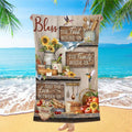 Colorful Kitchen, Hummingbird, Bless The Food Before Us Beach Towel, Christian Beach Towel, Christian Gift, Gift For Women