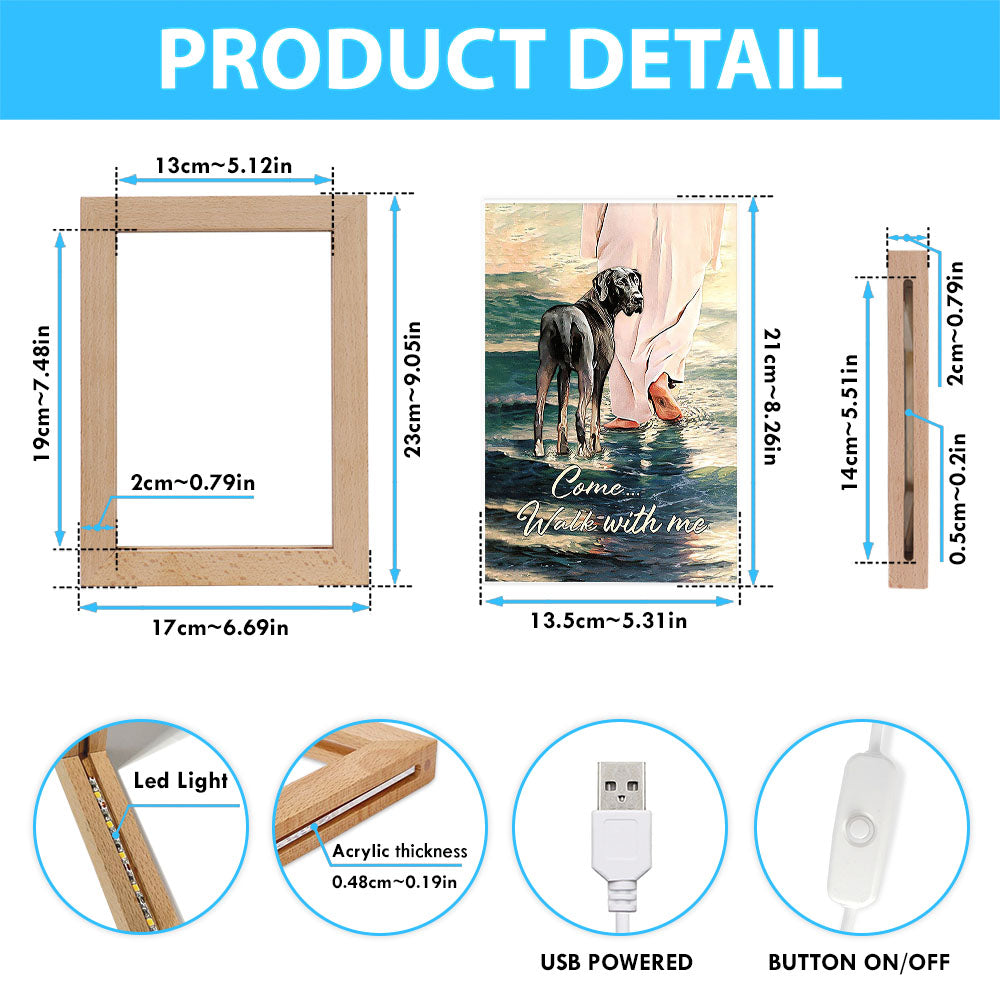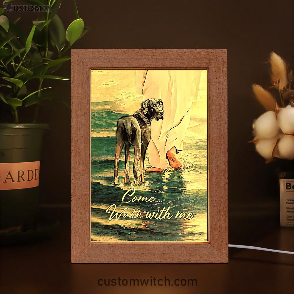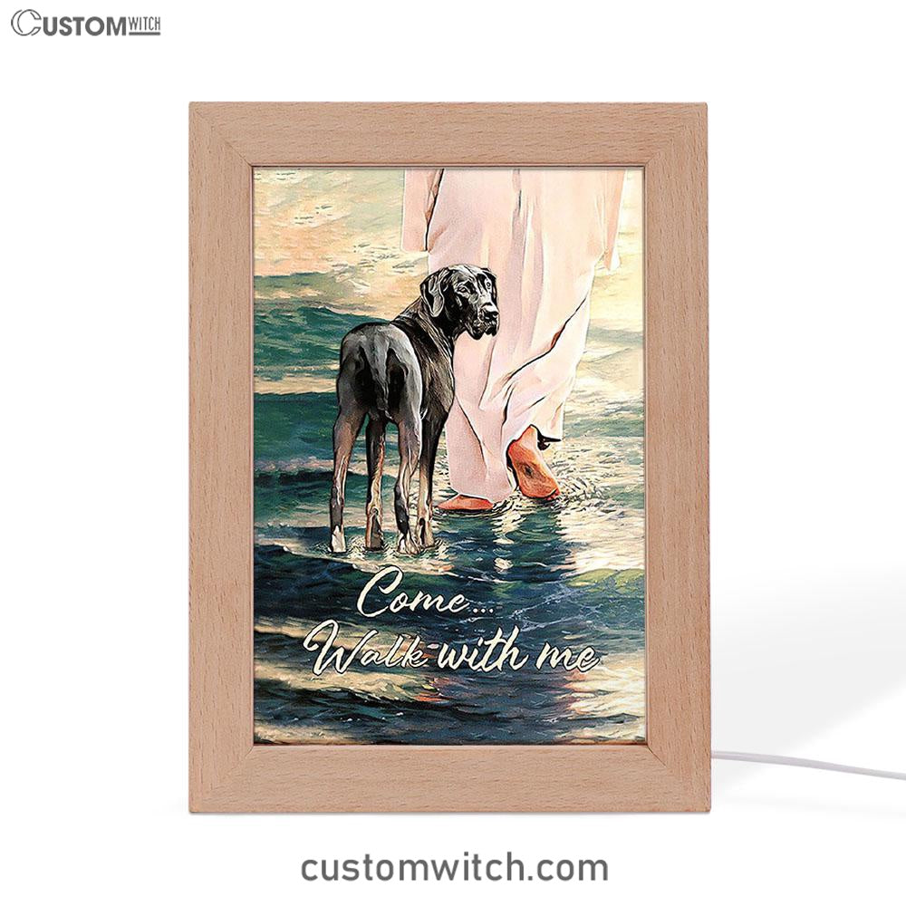 Come Walk With Me Frame Lamp - Great Dane And Jesus Walks On The Water Frame Lamp - Christian Art - Religious Home Decor