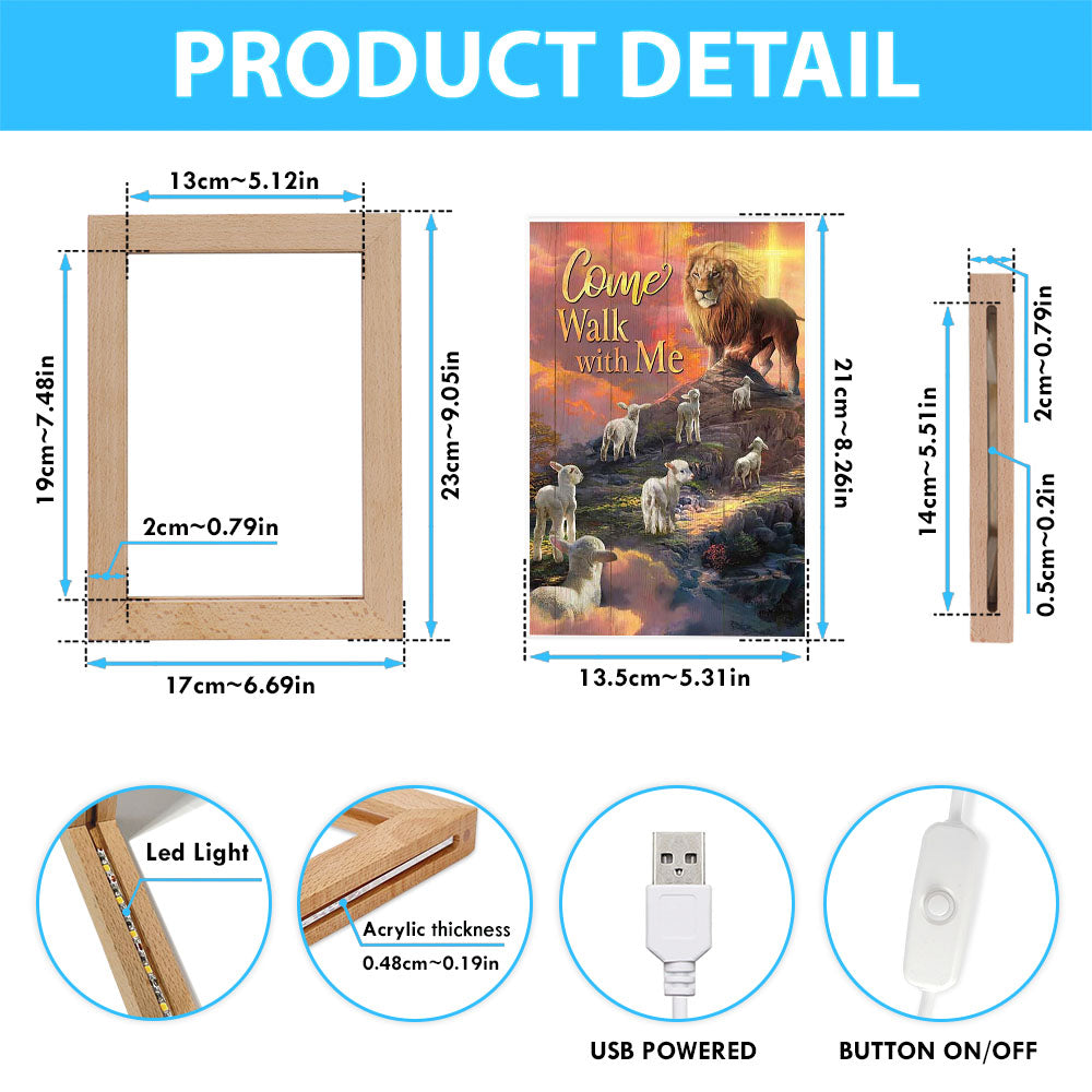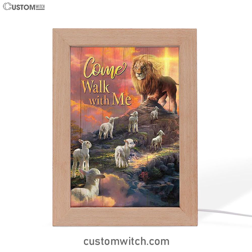Come Walk With Me Lion And Lambs Frame Lamp Art - Bible Verse Art - Christian Inspirational Decor
