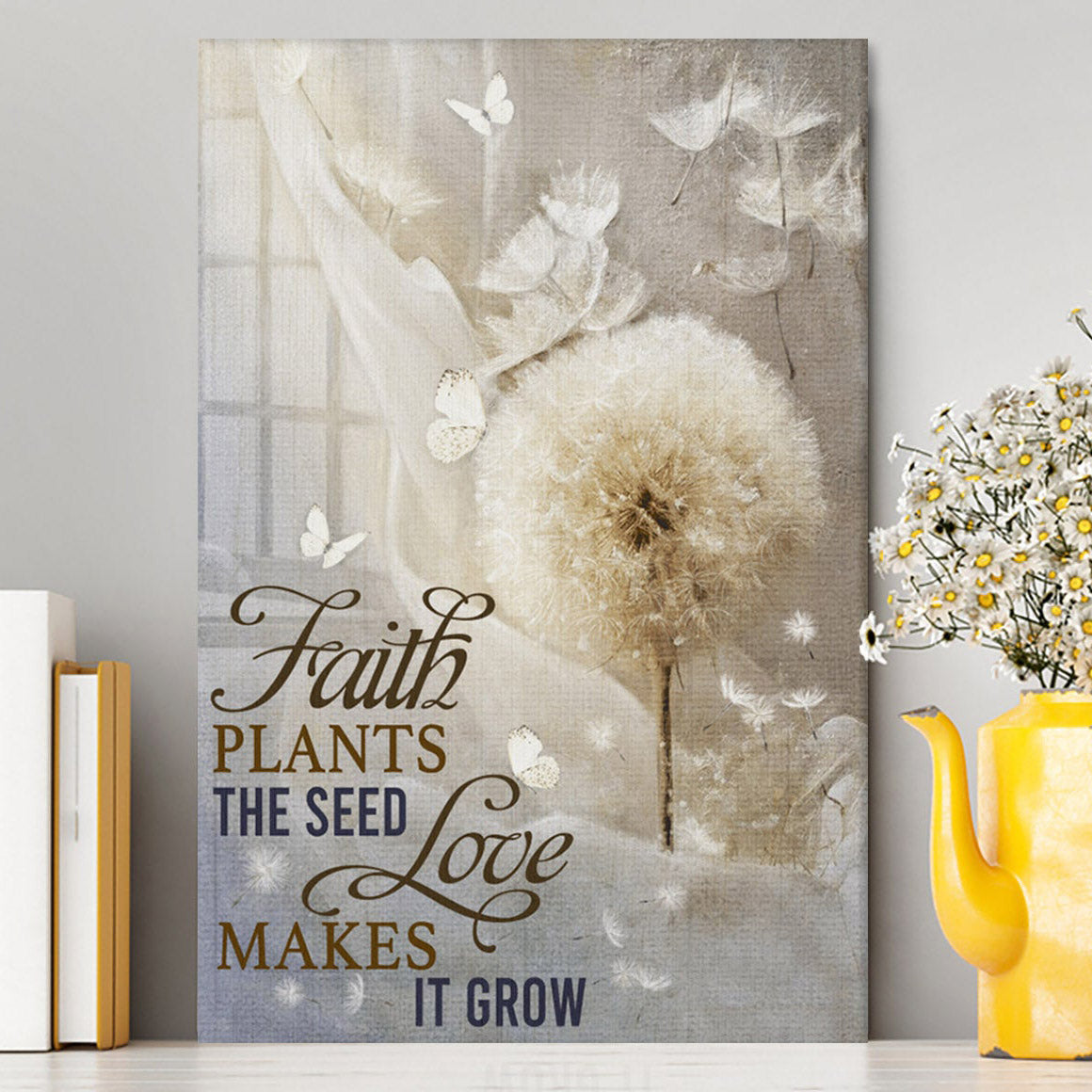 Faith Plans The Seed Love Makes It Grow Dandelion Canvas Wall Art - Christian Wall Art Decor - Religious Canvas Prints