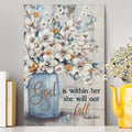 God Is Within Her Jasmine Flower Blue Vase Butterfly Canvas Wall Art - Christian Wall Art Decor - Religious Canvas Prints