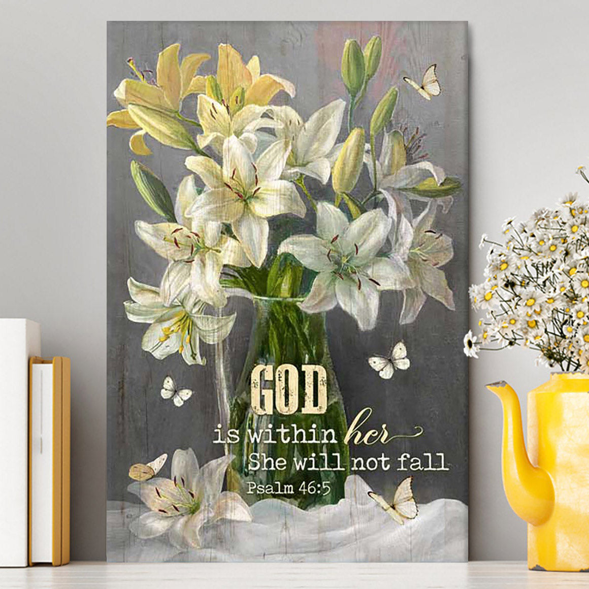 God Is Within Her Lily Flower Canvas Art - Bible Verse Wall Art - Christian Inspirational Wall Decor