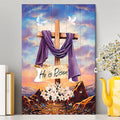 He Is Risen Cross Purple Ribbon Lily Flower Canvas Art - Bible Verse Wall Art - Christian Inspirational Wall Decor