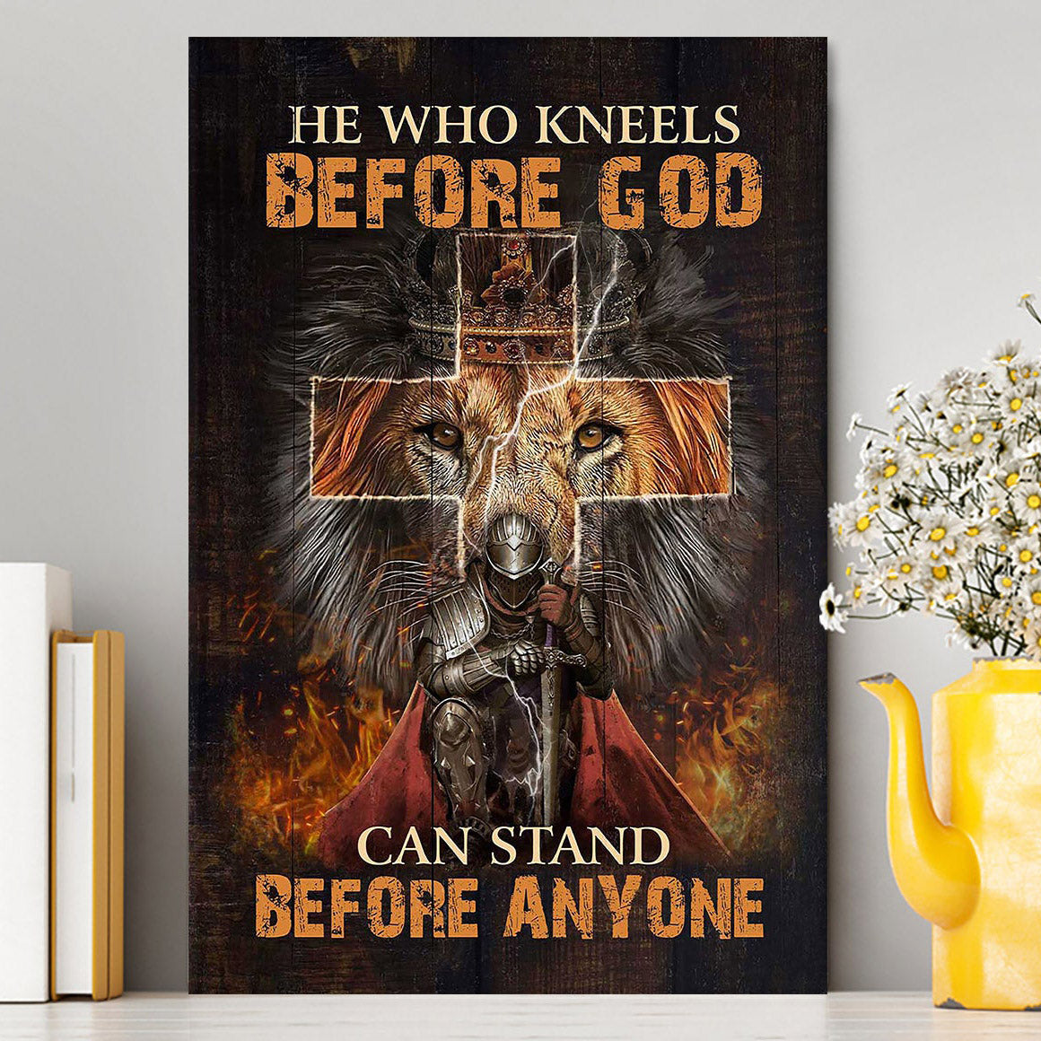 He Who Kneels Before God Canvas - Warrior Of Christ Lion Of Judah Canvas Art - Christian Art - Bible Verse Wall Art - Religious Home Decor