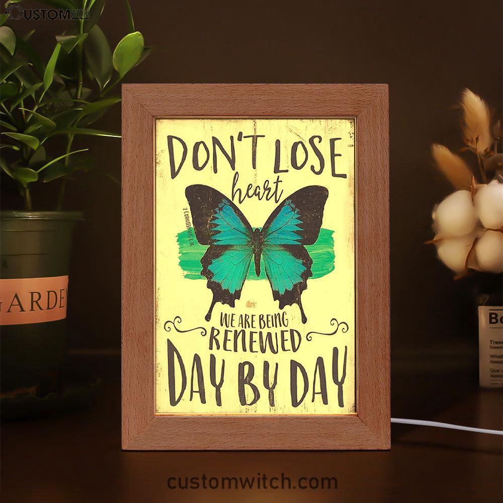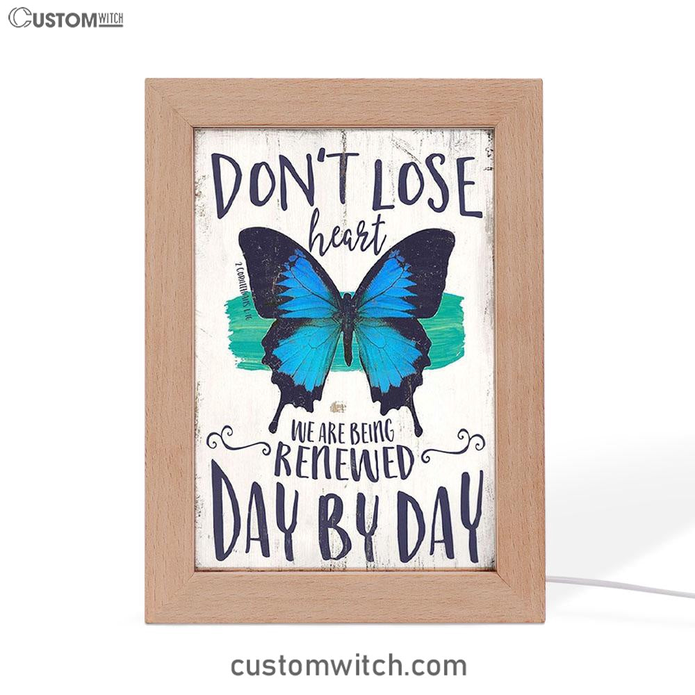 Corinthians 1 16 Don't Lose Heart Frame Lamp - Blue Butterfly Art - Christian Gift For Women