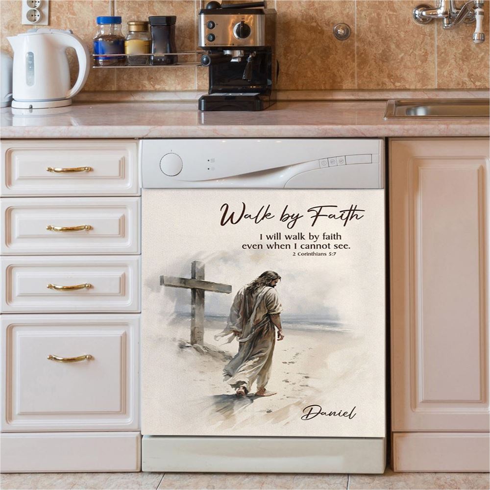 Corinthians 57 Walk By Faith Jesus & Cross Personalized Dishwasher Cover, Religious Dishwasher Magnet Cover, Bible Kitchen Decor
