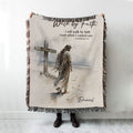 Corinthians 57 Walk By Faith Jesus & Cross Personalized Woven Throw Blanket - Religious Woven Blanket Prints - Bible Woven Blanket Art