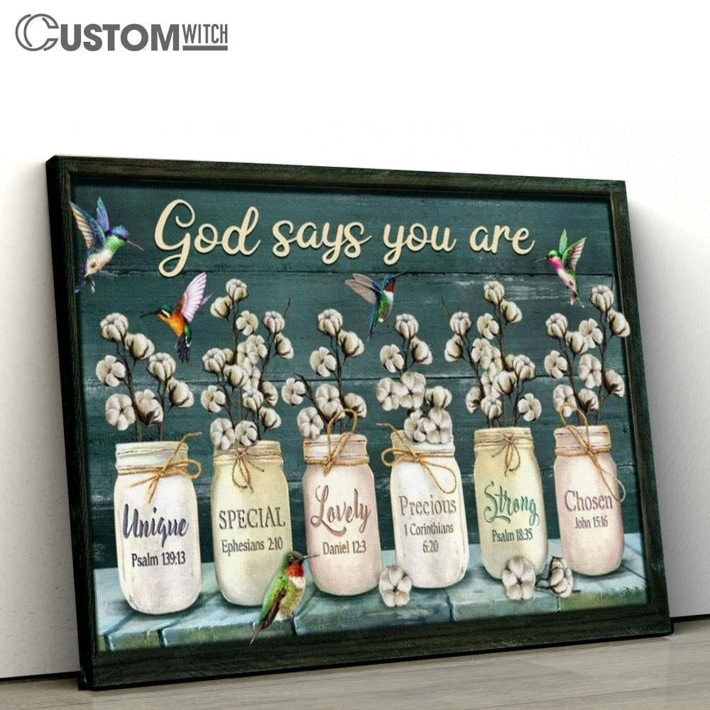 Cotton Flower Colorful Hummingbirds God Says You Are Canvas Poster