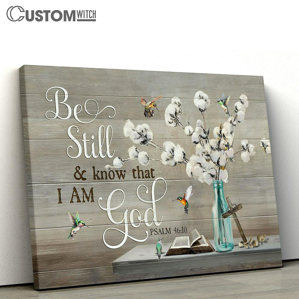 cotton flower Hummingbird Be still and know that I am God Canvas Wall Art - Bible Verse Canvas - Religious Prints