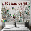 Cotton Flower, Vintage Garden, Hummingbird, God Says You Are Unique Tapestry, Tapestries for Living Room Bedroom