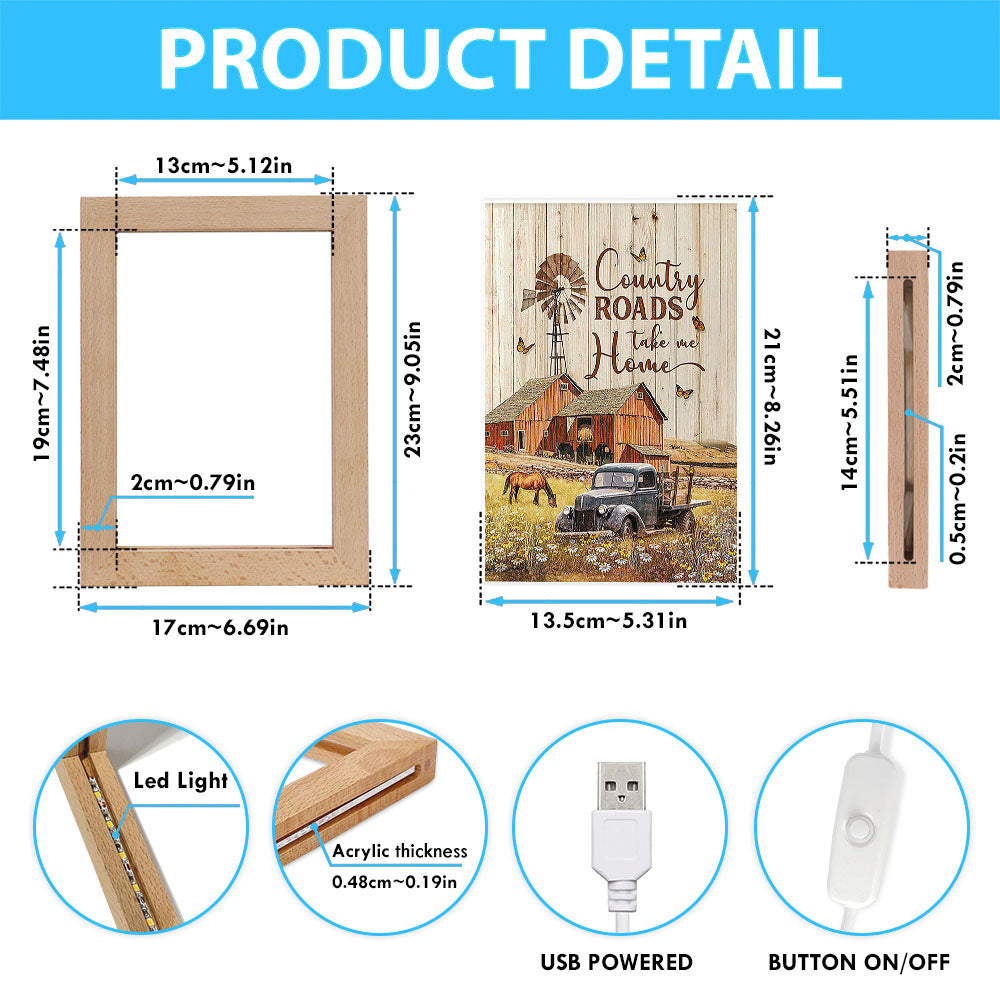 Country Roads Take Me Home Ladybug Car Horse Frame Lamp Art - Christian Frame Lamp - Gift For Horse Lover