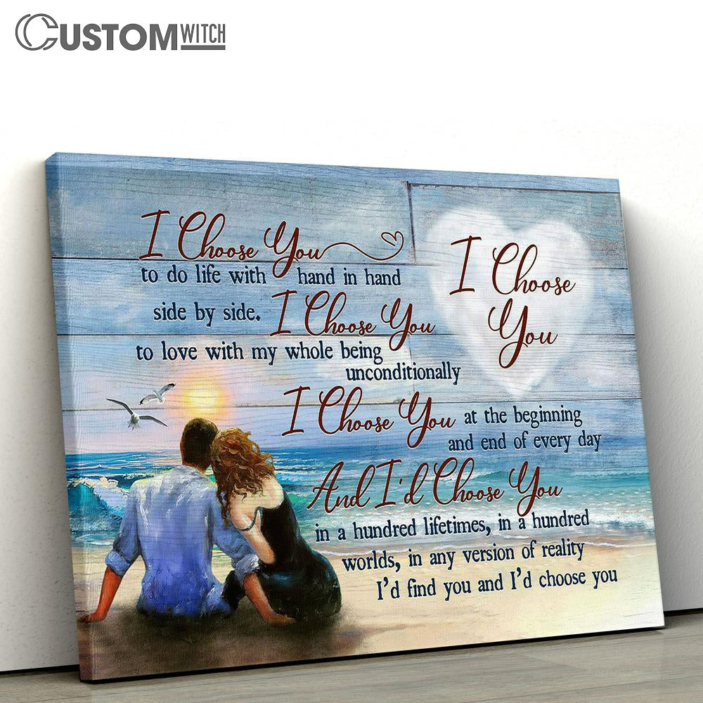 Couple Blue Ocean Sunset And I'd Choose You Canvas Wall Art - Bible Verse Canvas - Religious Prints