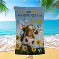 Cow Sunflower Field Rise And Shine Beach Towel - Christian Art - Bible Verse Beach Towel - Religious Beach Towel