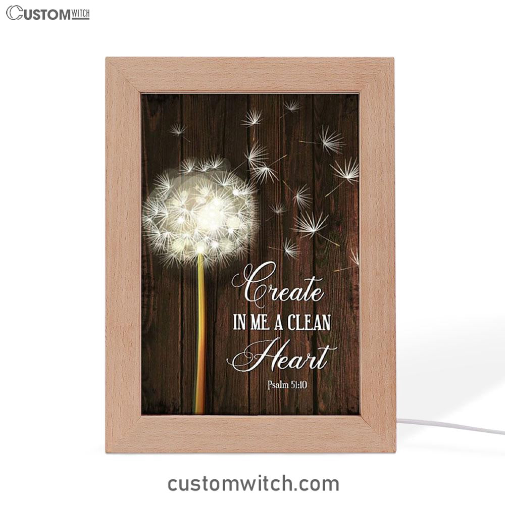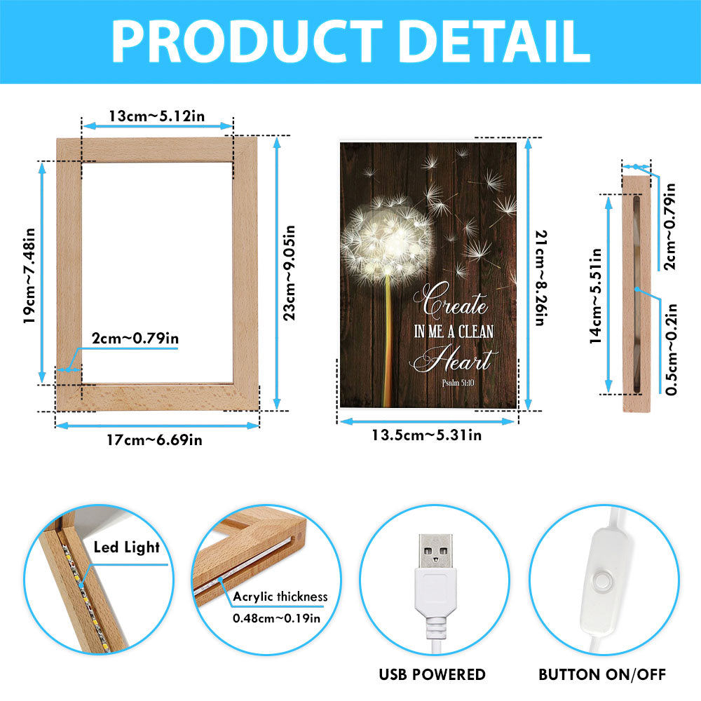 Create In Me A Clean Heart Dandelion Frame Lamp Art - Christian Night Light - Religious Decor