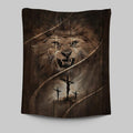 Cross Lion Of Judah Tapestry Wall Art - Christian Tapestries Prints - Bible Verse Tapestry Art