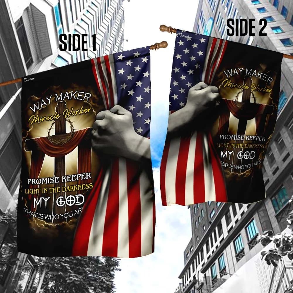 Cross With Jesus Way Maker And Miracle Worker House Flags, Christian Flag, Scripture Flag, Garden Banner